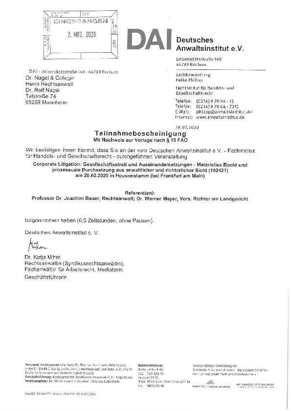 - Aktueller Rechtsprechungsüberblick: Gesellschaftsrecht (Online Vortrag / Mai 2020)